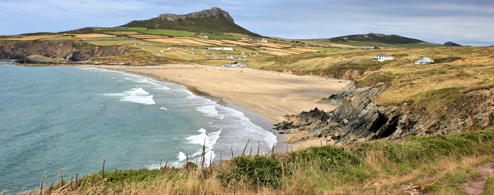 I stand on the farthest westerly point in Wales – Pen Dal-aderyn. Or almost, There are rocks below which look too treacherous to scramble on and a couple of women sitting having a picnic on the closest safest point.