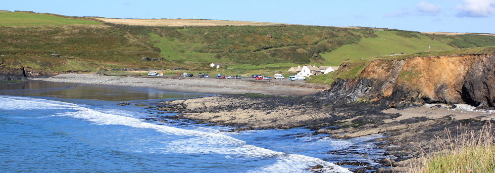 [Later I realise the large hump in the coastline ahead – visible in the photo above – is Dinas Head. This will be the highlight of my walk when I reach that part of the coast.]