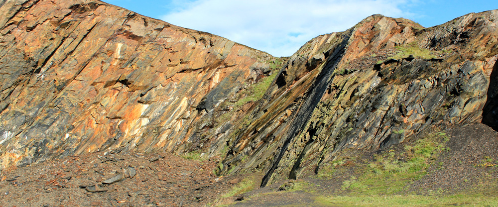 The rocky cliffs around the lagoon are beautiful. Great jagged shapes, and full of colour. Golden reds, purple greys, and vivid splashes of green vegetation.