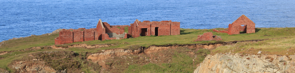 old buildings, Ruth hiking the Pembrokeshire coast
