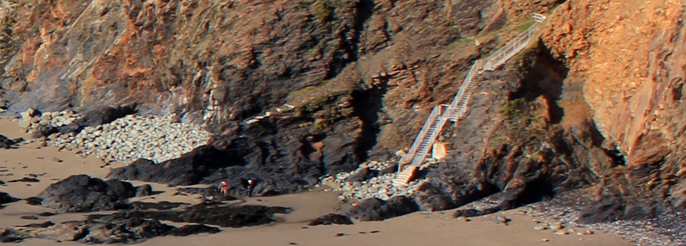 I wonder how they managed to get down there, until I see a metal staircase set into the cliff.