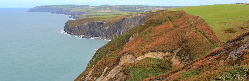 Now I’m starting to tire, so I begin looking ahead to work out where my exit route might be. I’m going to leave the path at Ceibwr Bay, and follow a footpath inland to Moylgrove. Where is Ceibwr Bay? Behind one of those headlands?