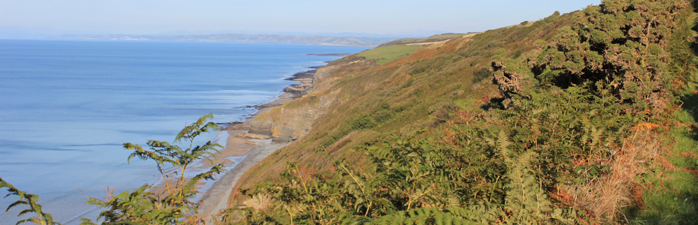 Just before the crest of the hill (above) I realise I must be approaching Aberaeron. I can hear an unfamiliar noise – the rush of traffic on a road. So I stop and admire the views, looking over the glassy sea and hoping to spot a dolphin.