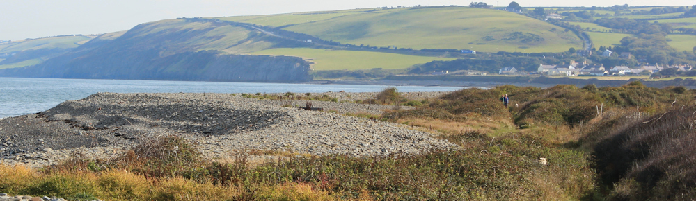 Another lovely and varied section this one isn’t it? I often think going to the toilet is a gurantee to make someone appear! I walked this today but the path at Llanon is odd. If you look at the most recent Ordnance Survey map there are actually now two coast path routes. An inland route that goes right into the centre of Llanon and another closer to the coast that only gets near the church, which is at the far north west of the village. I tried to follow this latter route and the path is diverted onto the pebble beach by some expensive metal stair cases (I suspect these can be “moved back” if more of the coast erodes). I suspect this diversion is because the path on the cliff tops has eroded away. But at the second stair case (which I noted did not have a coast path sign, unlike the first one) I went up expecting the path to continue on the low cliffs, but there was a fence blocking the way and the only path headed inland towards the road. I decided to continue on the beach assuming this was the right way to reach those wooden poles you photographed (but it was near high tide, so the larger waves were reaching them). On making it past these there was then a stream. With no way past it other than to ford it or go back, I opted for the later since I could see the onward coast path ahead. Not sure what is going on with the path around here!
