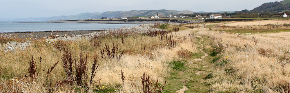 And then I leave the town behind as I follow a path beside the shingle beach, heading for Llanrhystud. The first place I’ll come to is Aberarth and this is just visible ahead, although the view is hazy through a morning mist.