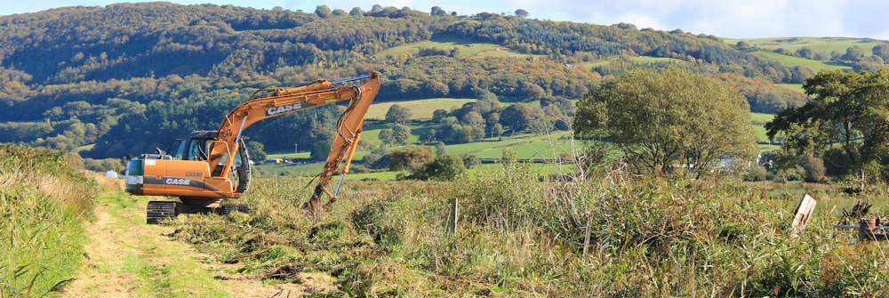 That digger was dredging the ditch when I walked that bit too – in my case on 17 September 2014. It made what might have been an unmemorable section unforgettable, not because of the dredger itself, but because of the bloated dead cow that it had just lifted out of the ditch and dumped next to the path. Needless to say, I had to hold my breath as I passed by!