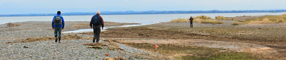 It’s nearly high tide. The spit of land I’m walking along is very low-lying, and the small channel (just visible beyond the walkers in the photo above) begins to fill up. Threatens to cut me off.