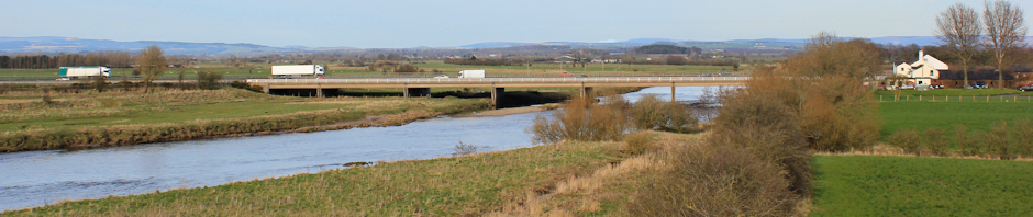 Ahead is the M6 and my crossing point over the River Esk at a place called Metal Bridge. There should be an ordinary road running alongside the motorway too, but, if there is, I can’t see it from this distance.