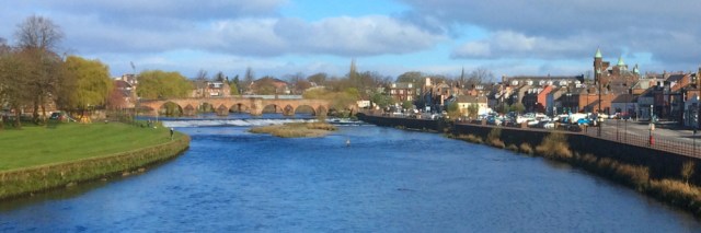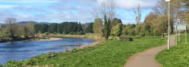It looks quite beautiful in the bright light of this April morning. I cross the River Nith via an elegant footbridge…