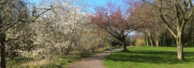 … and start walking along a pleasant path beside the river. The trees are lovely, just beginning to blossom.