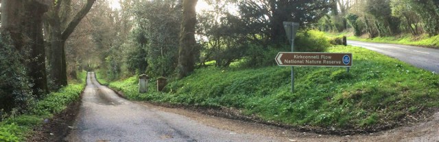 A couple of miles later, I come to the turnoff I’ve been looking out for. This little lane should take me to Kirkconnell Flow Nature Reserve, which has a Core Path running through it.