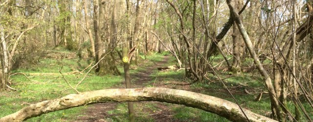 After struggling for a while, I give up with the marsh. The central wetland is surrounded by a ring of trees, and I decide to walk through this woodland instead… there seems to be some sort of path.