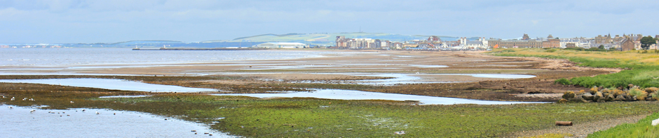 On the other side, a pleasant walkway leads through parkland towards the town. The seaward side of the walk might once have been beach, but has been overgrown with dune plants.