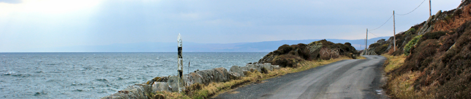 A sign tells me that the route off to the left is the scenic route to Campbeltown and the Mull of Kintyre. It follows the coast, and it’s the road I’ll be walking down tomorrow.