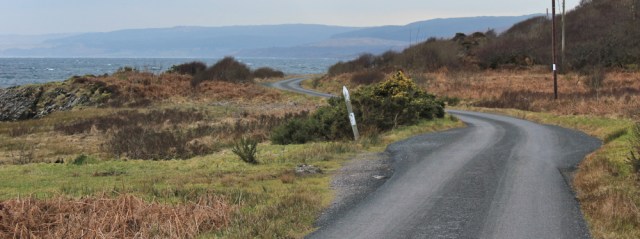 It’s a wonderful road, twisting along close to the shore, and with fantastic views over towards Arran – where I can see snow on the mountains. (The photographs don’t do the view justice. It really was beautiful.)
