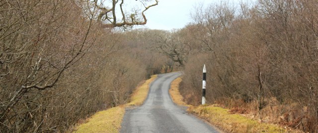 Over the brow of the hill, I lose sight of the sea. The road dips down and I walk towards a black and white pole. The car park must be a little further on, but I suddenly get nervous about missing the bus, and I decide the marker pole is a good place to end my walk today.