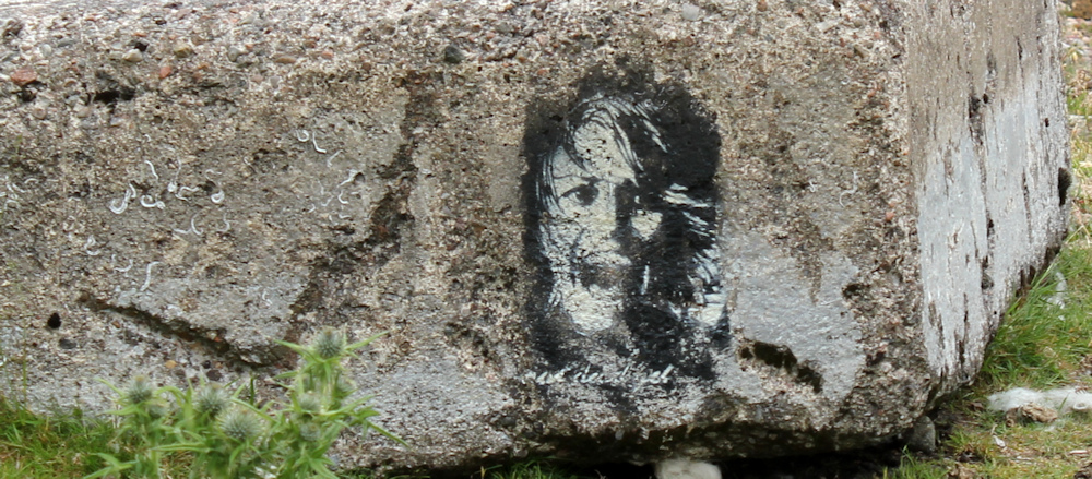 10 fossils and Banksy, on A861, Ruth’s coastal walk around the UK, Scotland