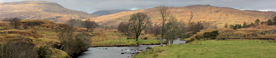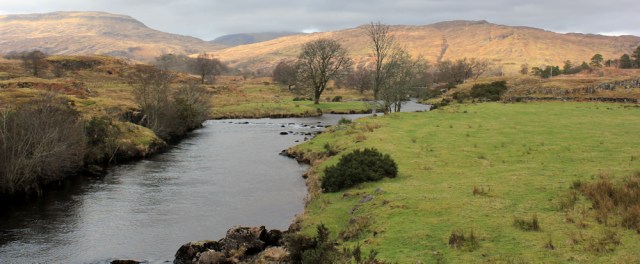 The track runs parallel to the road, and alongside a little river – the Abhainn a Ghlinne Ghil – before it finally fizzles out, and I join the tarmac again.