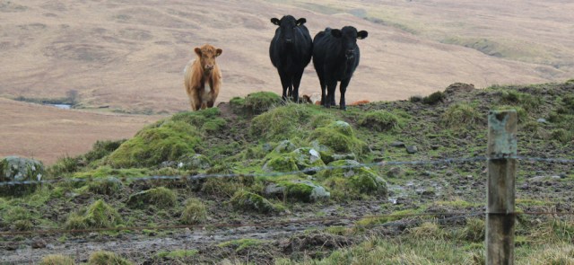 I was going to take a track off to the left, and follow the River Aline down to the loch. But the track is covered in cattle. Oh dear.