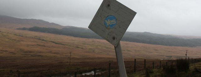 A nearby signpost displays a sticker that simply says “Yes”. The sticker is old and weather-faded, and I guess it must refer to the Scottish Referendum a few years ago.