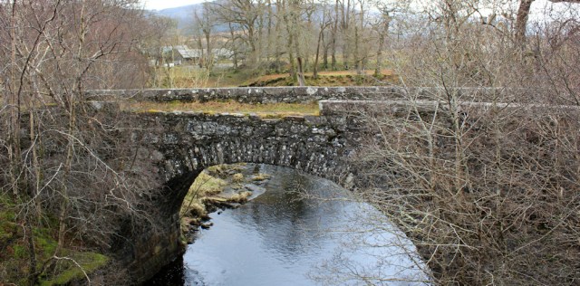 I cross over Acharn Bridge, a functional construction which carries the road. But I notice a much older bridge to my right, with a lovely stone span. I guess this was once the main route across the river, but is now only used as an access road and farm track.