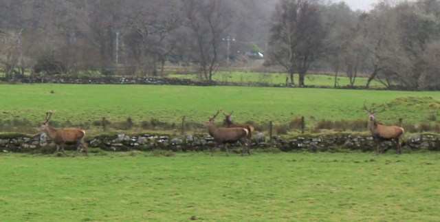 I notice movement in the field to my left. Cows? No. Deer. I’m used to deer in the area where I used to live, but these deer are much bigger and more impressive looking.