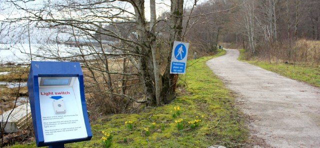 The next section of the track has a firm surface. And what is this blue box? A “light switch”? Yes. You can light up the walkway if you need to. I guess it’s a health and safety feature for people who use the harbour.