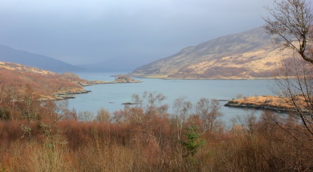 There is grey cloud ahead. In fact, I can’t even see the end of Loch Teacuis. There must be rain coming.