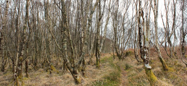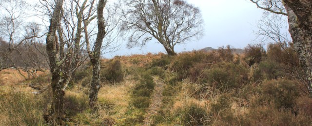 The instructions on the Morvern Undiscovered web site mention heading for the ruins at Gleannaguda. Trouble is, I can’t see any ruins. Just a lot of silver birch and plenty of boggy wasteland.