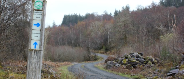 At the junction, a way marker sign tells me it is only 5 km to Kinlochteacuis. I’m nearly there.
