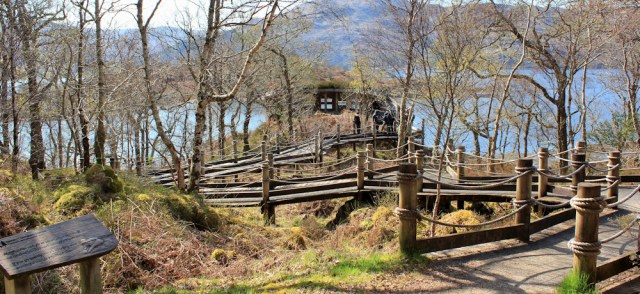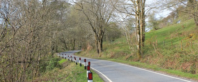 The road turns away from the loch again, and passes behind a raised area of thick woodland.