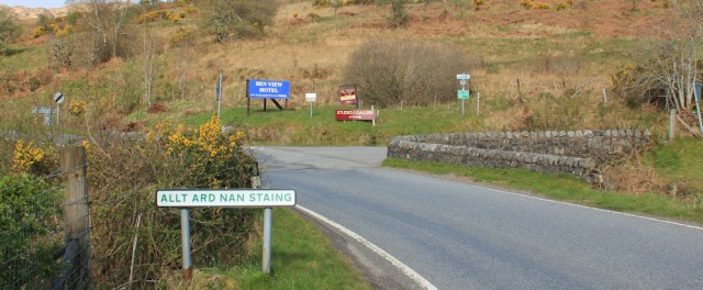 I cross over another river. Allt Ard Nan Staing. And here’s another turnoff to the right.