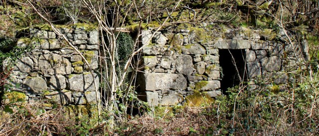Half hidden in vegetation is a ruined building. I always feel melancholy when I see these abandoned structures. Is it an old farming croft? Was it recently abandoned, or is it the result of the Highland clearances?