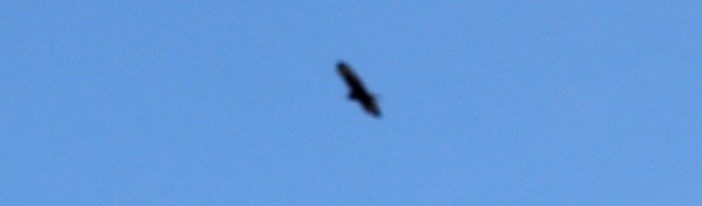 Oh, what’s that overhead. High above me is another large bird. It’s too far away to see clearly, but I try to catch a photograph. The results are, to be frank, completely embarrassing.