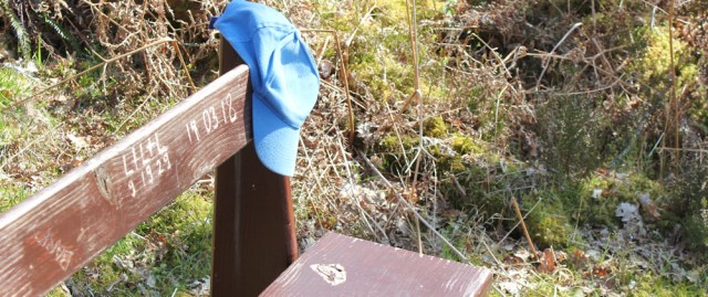 Here’s another bench and – what a coincidence – someone has left a cap on this one too. I wonder if it belongs to the couple I saw earlier.