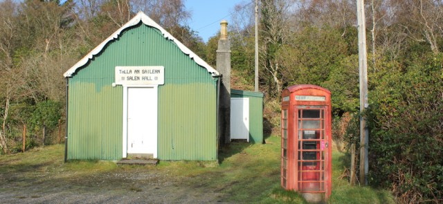 I get up early, skip breakfast, drive to Glenborrodale, and catch the one-and-only bus of the day from Glenborrodale to Salen, where I’m dropped off at the Salen Hotel.