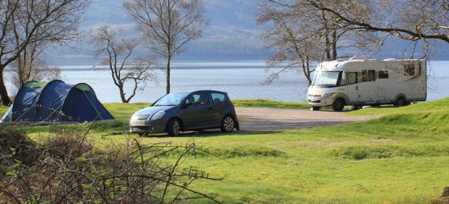 At the Camas Torsa carpark – an official Forestry Commision site – there are some “wild” campers. Not very wild, really, but what a wonderful place to spend the night.