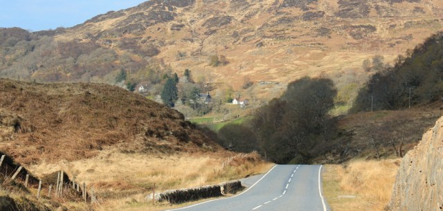 The road curves round a low headland, and I see some buildings ahead. Check my map… Camus Inas, possibly, or is it Camas Inas? Depends whether you use Gaelic or English spelling, I guess.