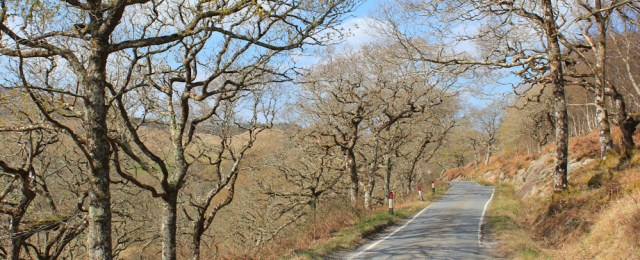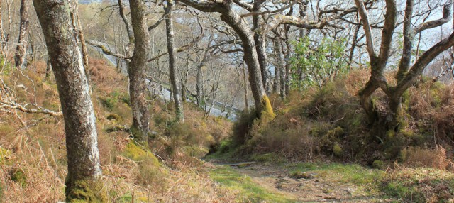 The road turns away from the water, and runs a few hundred metres inland, along a lovely wooded slope.