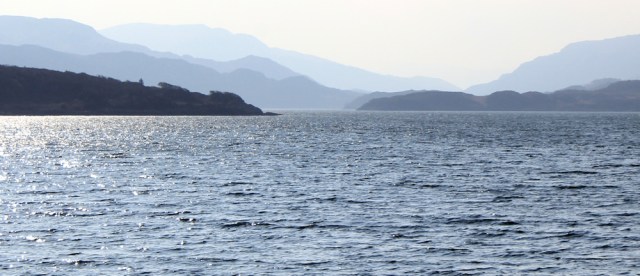 I look up Loch Sunart. The morning sun is low and bright, and the hills in the distance are graded shades of blue. Stop to take more photographs.