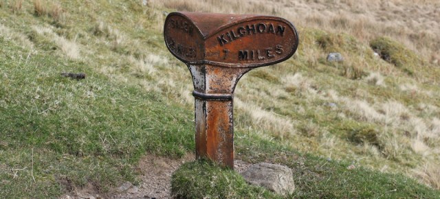 It’s a long uphill slog, now, and I soon lose sight of the loch. But I don’t mind because the scenery is beautiful. A milestone marker informs me I have 7 miles to go before I reach Kilchoan.