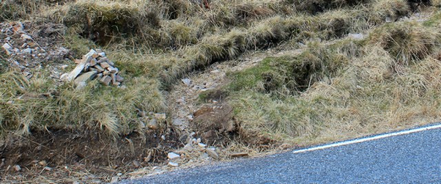 The digger continues round the corner of the road, closely followed by the two trucks. This leaves their parking place free… and, oh, what a parking place!