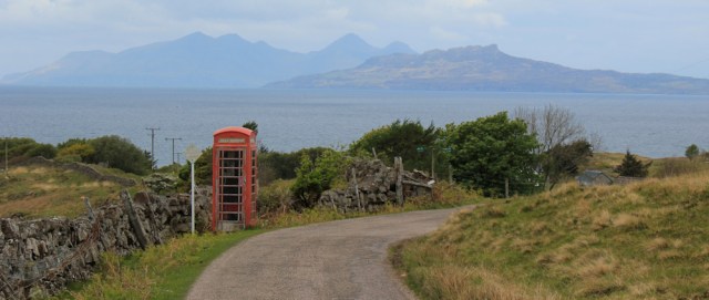 Just over the brow of the hill, I spot a red phone box. Love seeing these old things, and I open the door, expecting to find the phone missing. But it is still there. I lift the receiver. Amazing! Yes, there’s a dial tone.