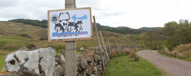 Further along I see an odd sign. Sleddogcentre. I read it as all one word, and assume it’s the name of a house. Rather weird name. And the sign is obviously warning that the property is guarded by a pack of ferocious guard dogs.