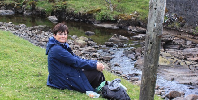 It’s just gone 1pm. I sit on the grassy bank and eat my picnic lunch. I’m staying in a self-catering place on this trip, and so I’ve stocked up with bread, cheese and ham. Made myself a proper sandwich for lunch this time, instead of the usual snack bars.