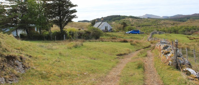 My track joins another track. Which way to go? There are no signs to guide me. I decide to turn left as that, according to my map, is where Gortenfern lies, and from there the map shows a track leading down to the shore.