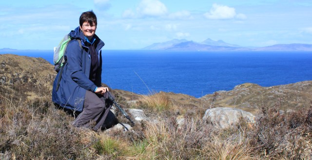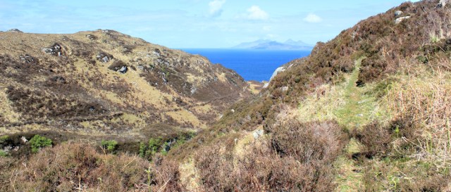 I come around a hillock and… what a view! That island must be… Muck, maybe? No, Eigg. And is that Rum behind it?