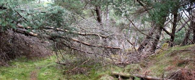 Unfortunately, the green lane soon deteriorates, and I have to climb over fallen tree trunks and duck under hanging branches. It becomes slow and difficult to make progress, and my umbrella turns out to be a bit of a hinderance, but I persevere.