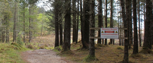 I soon reach the turning down to the beach. Here’s the sign I saw yesterday, warning about unexploded munitions left over from when this area belonged to the Ministry of Defence.