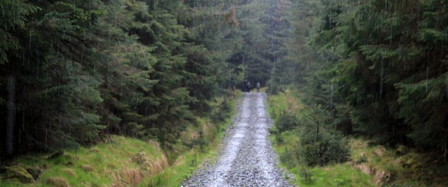 It’s actually quite a boring walk through featureless plantation firs. The surface of the track is made of sharp gravel, and it’s painful to walk on. Don’t know how those joggers managed to run over this!